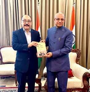GOVERNOR APPRECIATED HARSHA VARDHAN SHRINGLA FOR GRAND SUCCEES AND PRAISING PM EFFORTS TO UNITE WORLD UNDER VASUDEVA KUTUMBHA.