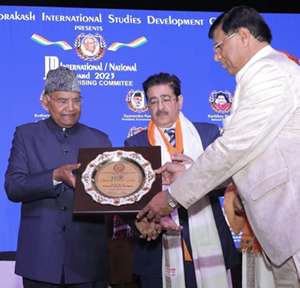 New Delhi: The Loknayak Jayaprakash International Awards, held at the Dr. Ambedkar Convention Centre, witnessed a momentous gathering of distinguished personalities, with Sandeep Marwah, Nine times World Record Holder and Chancellor of AAFT University of Media and Arts, gracing the occasion as the Guest of Honour alongside the esteemed presence of the 14th President of India, Shri Ram Nath Kovind Ji.