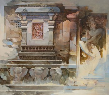 The present series depicts the subtle nuances of the Indian cultural traditions and heritage of the historical monuments, temples, shrines in an expressive and artistic style. He has been deeply inspired by the beauty of Nature and relevance of the historical monuments at various places. He has incorporated the architectural details of various monumental buildings and the surrounding environment of places of historical importance and cultural relevance at Ajanta, Ellora, Pandharpurand many more places in his endeavours. His lucid visual language of expressions incorporates the use of vivid muses, iconic motifs and spiritual extravaganza of sentimental expressions in apt religious and cultural fervours and their sanctity in proper perspectives. He has artistically and aesthetically adorned his works with ethnic and eternal visual effects at the desired arenas in the work in order to lay emphasis on their relevance in the modern materialistic world full of enjoyment & pleasures and that peculiar attitude of the masses. He has demonstrated numerous aspects of the human attachment towards the monuments of historical and cultural significance and the necessity of the desired efforts towards maintaining their sanctity and relevance in the modern era. He has made and displayed paintings on Buddha and other deities like Lord Ganesha, Lord Vishnu, Indra Sabha, Kailash Temple, Mahishasurmardini, etc in his style.