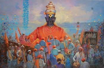 Recent work of eminent artist Parsharam V. Sutaar is showing his paintings exhibition in Jehangir Art Gallery, M.G. Road, Kala Ghoda, Mumbai 400 001 from 11th to 17th April, 2023 between 11 am to 7 pm. This work in Acrylic on canvas will highlight the relevance and sanctity of the religious and cultural heritage of our country and its numerous facets in apt perspectives of visual fine arts.
