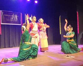 The momentum  for the celebration  was set  by  Bharata College of Fine Arts & Culture , the   founder Principal of which  is  Dr Sandhya Purecha ,Chairman, Sangeet Natak Akademi. ‘Swarajya’ absolutely  set the prelude to the exploration of SHAPATH  . Vibrant and seasoned  dancers  Chitra Dalvi , Pushkar(Bharatanatyam )  Latasana Devi  (.Manipuri)  and the renowned   Shubhada Varadkar  also the choreographer (Odissi) brought to life  the theme of  ‘Swarajya’  . It  was just the right start to  compliment the  Maharashtra Divas  that  at Mysore Auditorium , sought  to   celebrate the World Dance Day   with a potent  theme of  ‘Shapath’  . ‘Swarajya’ highlighted  the  pledge of freedom taken by Bal shivaji  to fight for freedom , to worship, to speak and live without fear, and a  pledge not to suffer  injustice.