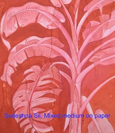 Sudeshna Sil’s work reflects her sensitivity, influenced by Bengal’s nature and art training. Through watercolour, mixed media, and fabric, she portrays nature’s depth, offering escape from city life.